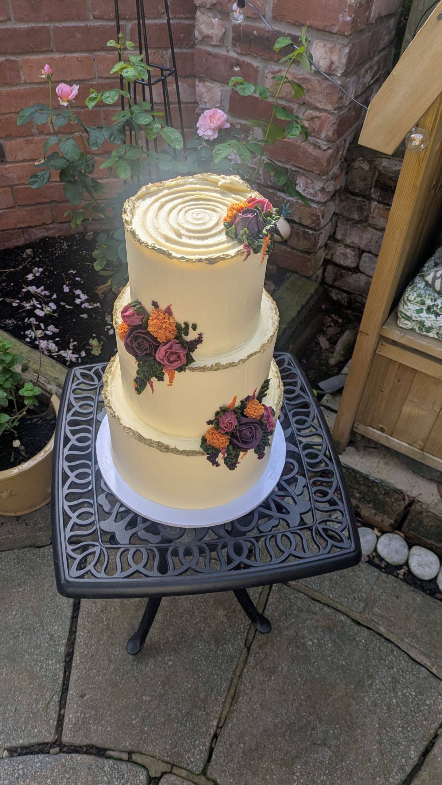 At Cherry & Black Bakery we specialise in Bespoke buttercream wedding cakes and hand-piped flowers!